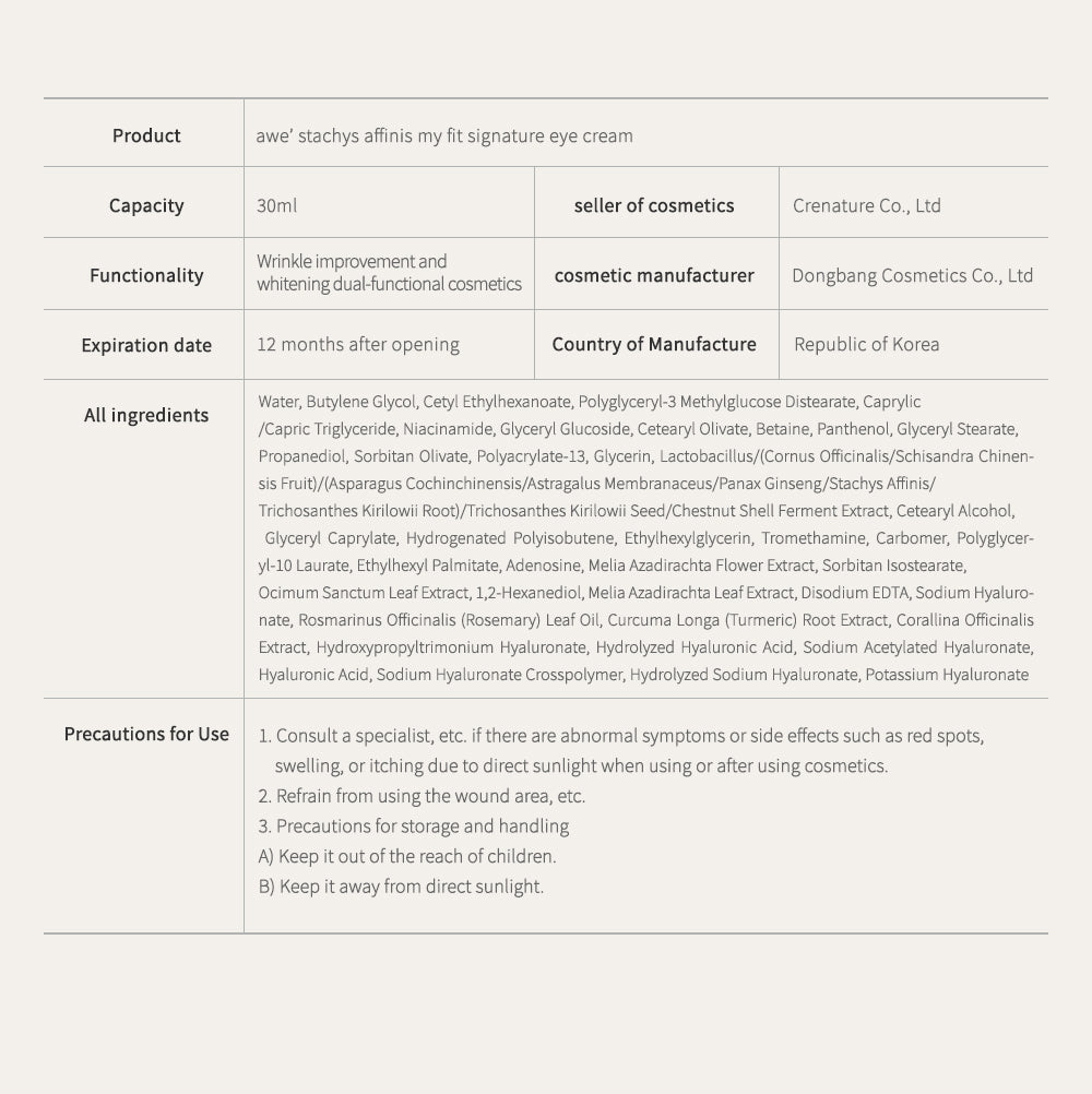 Wrinkle improvement and whitening dual-functional cosmetics│Low-irritation vegan eye cream that intensively cares for bright skin and elasticity