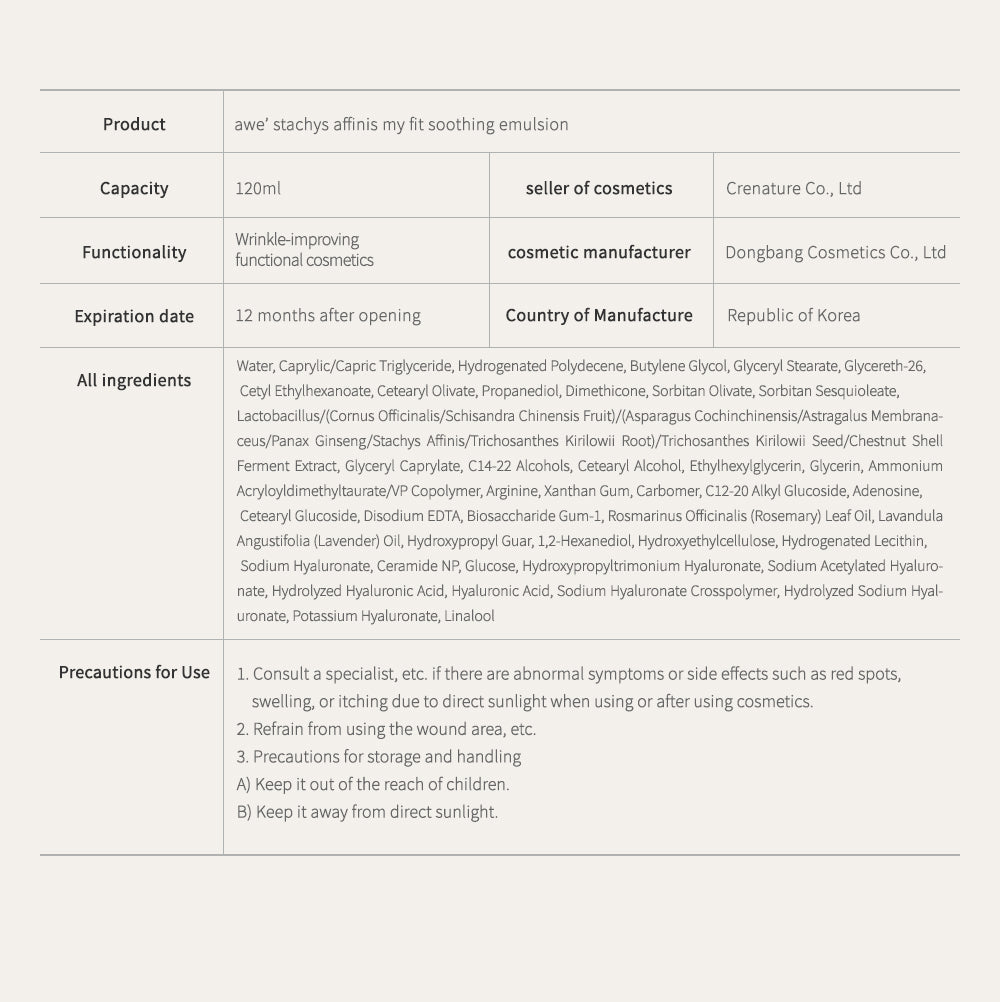 awe' stahchys affinis my fit soothing emulsion 120ml